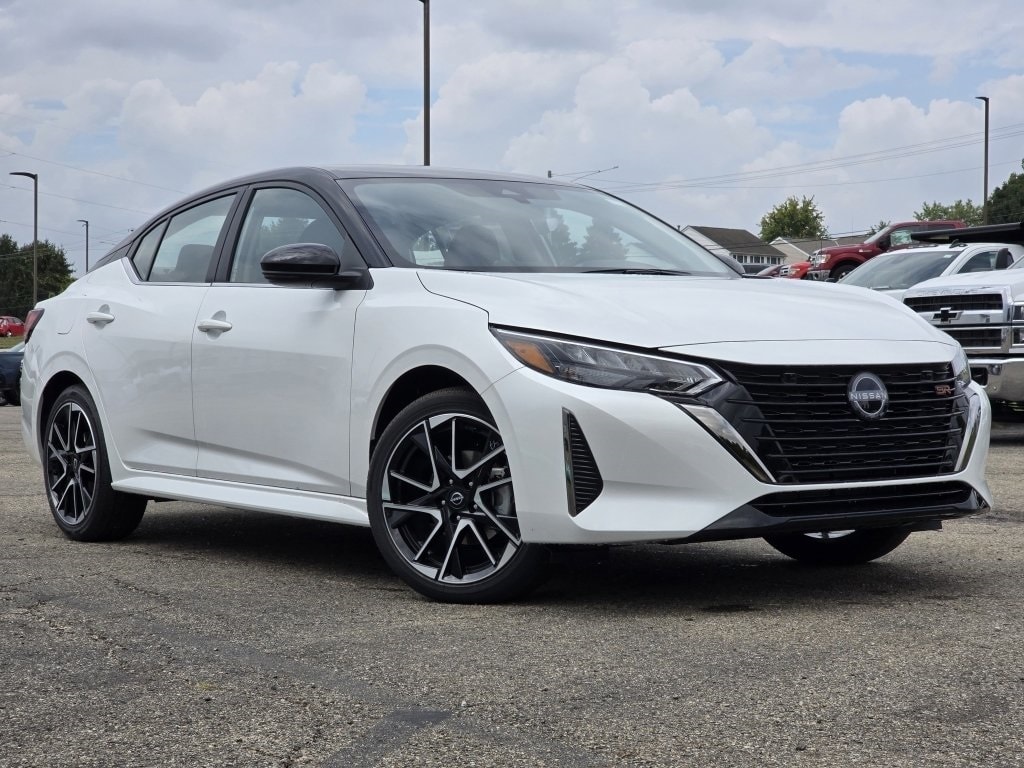 Aspen White Tricoat/Super Black 2025 Nissan Sentra SR Price includes: $500 - Nissan MY25 Sentra Bonus Cash. Exp. 11/03/2025