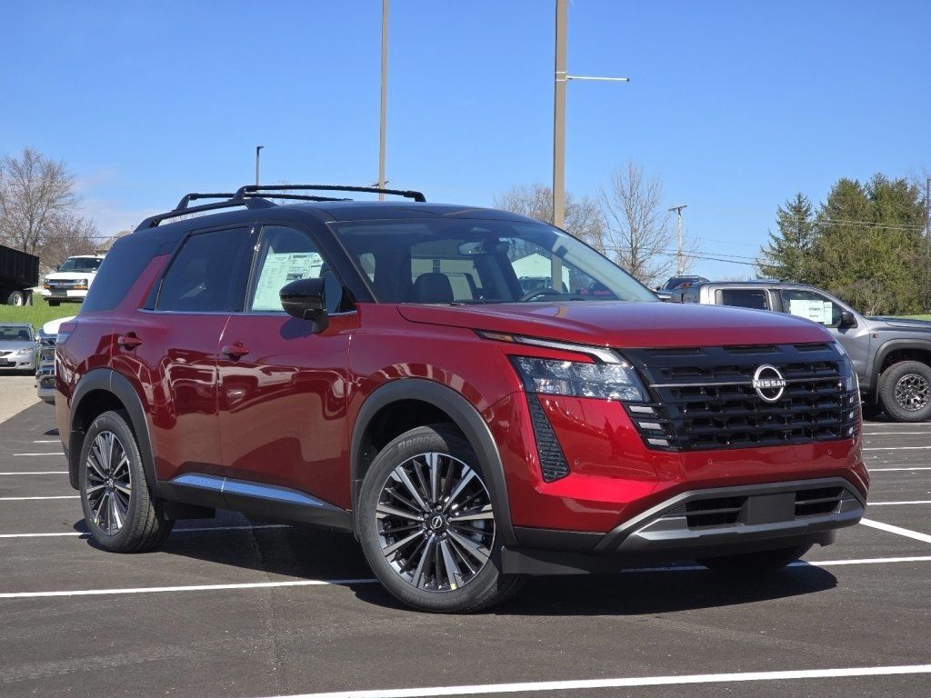Scarlet Ember/Super Black 2026 Nissan Pathfinder Platinum Price includes: $2000 - Nissan Customer Cash. Exp. 03/31/2026