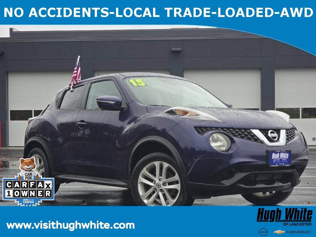 CARFAX VERIFIED 1-OWNER. Free CARFAX report! DESIRABLE FEATURES: * NEW BRAKES *, * CARFAX 1-OWNER *, * LOCAL 1-OWNER *, * LOCAL-TRADE-IN *, NAVIGATION, MOONROOF, AWD, HEATED-SEATS, TECH PKG, BACKUP CAMERA, BLUETOOTH, ALLOY-WHEELS, Remote entry, SiriusXM. Your 2015 Nissan Juke SV is perfect for daily work or weekend road trips to our neighboring communities of Lancaster, Columbus, Newark, Pickerington, and Logan.Hugh White Chevrolet of Lancaster also offers extended vehicle service contracts so our Lancaster, OH area drivers enjoy a worry-free used car, SUV or van ownership experience. We proudly serve the counties of Fairfield, Hocking, Perry, Licking, and Pickaway with quality pre-owned vehicles Ohio drivers can trust.